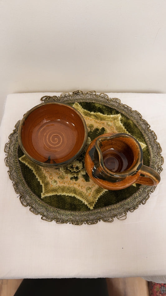 Vintage Glazed Studio Pottery Cream & Sugar Set