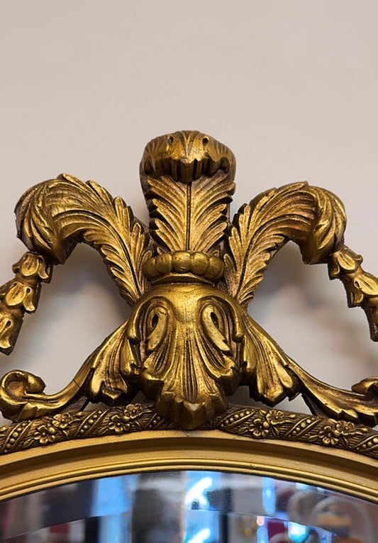 Round Giltwood Wall Mirror with Decorative Crest