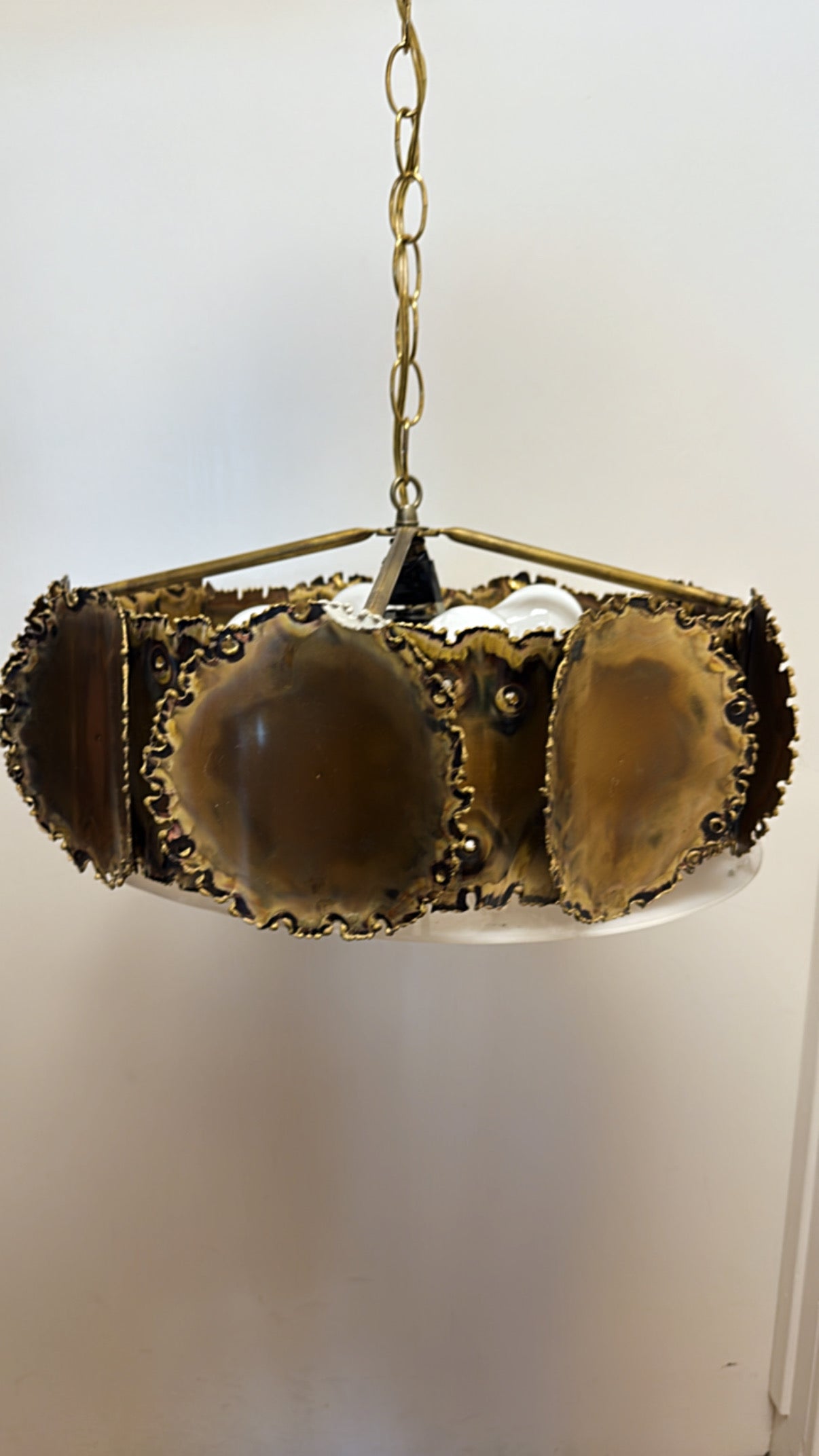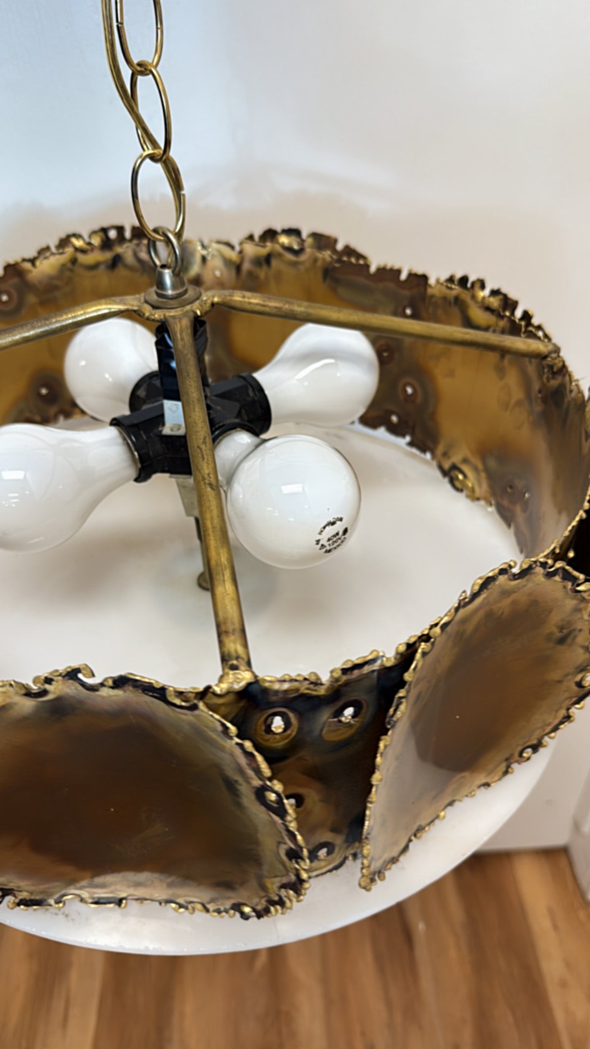 1960s Tom Greene Torch Cut Brass Pendant Light