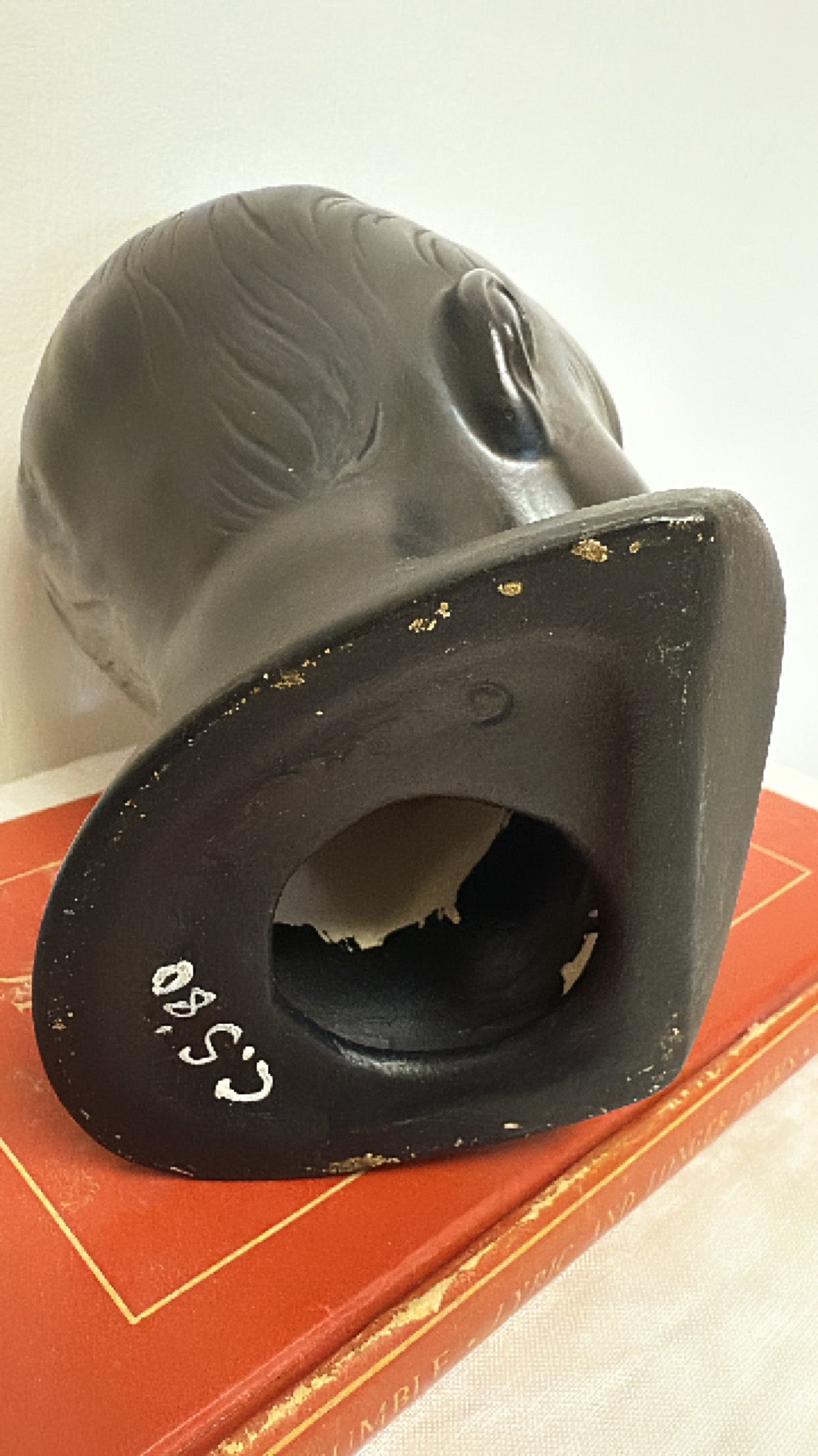 Molded in ceramic with a smooth, matte glaze, the bust is ideal for vintage-inspired interiors, bookshelves, or artful display in a curated collection. Marked by Holland Mold, a well-known American ceramics company active throughout the mid to late 20th century.