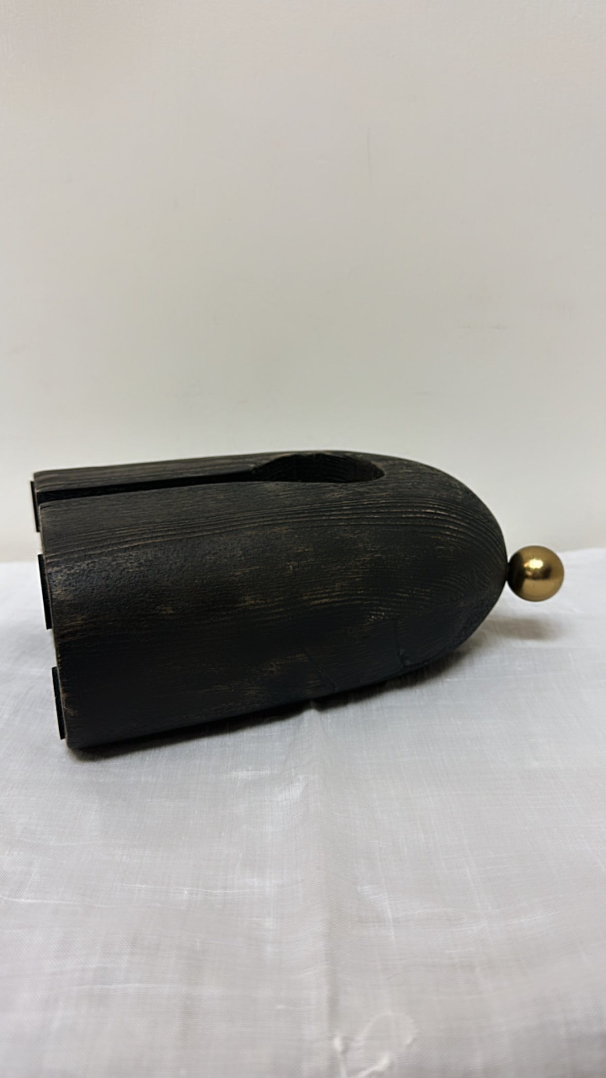 Modern and unique Arch Abstract Art Sculpture Wood Object from Crate and Barrel. Wood and metal piece.