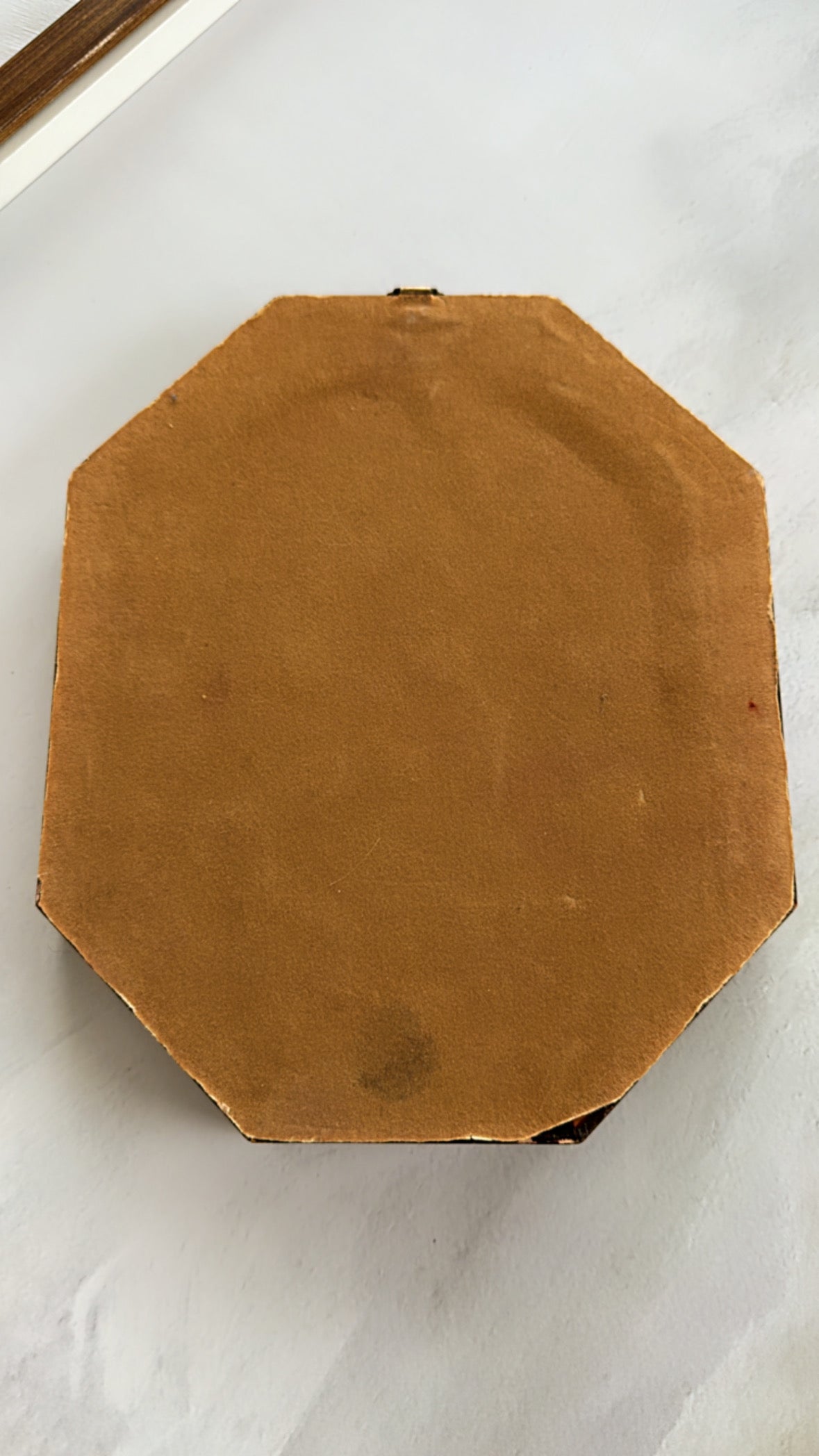 Note: Frame is in vintage conditions as it could be from the 50s. Fabric piece showing on top of oval part of frame. Sold as it comes!