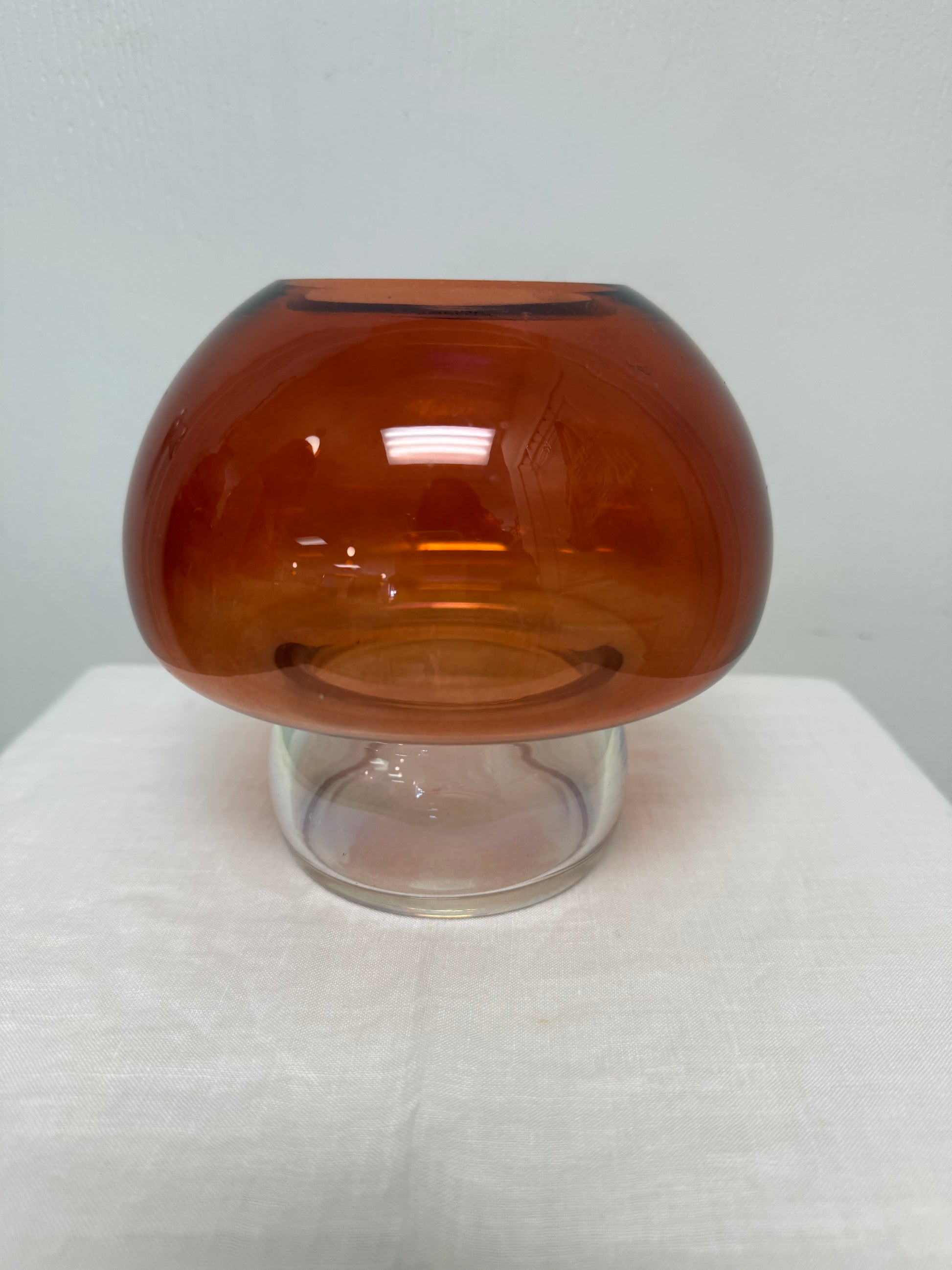 OH SO COOL TWO TONE LARGE GLASS MUSHROOM VASE.