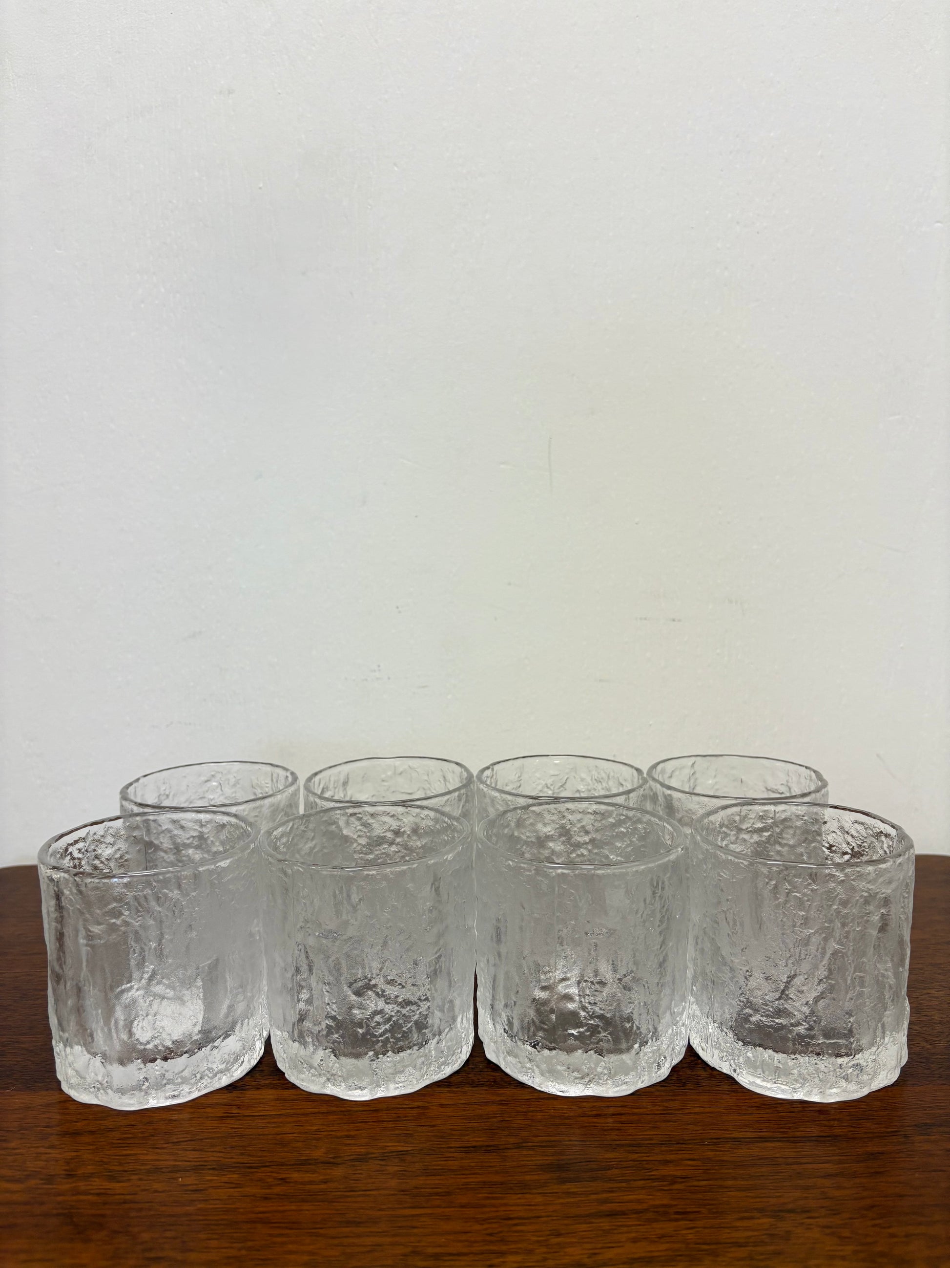 MCM HOYA Frosted Glacier Ice Bark Lowball Whiskey Glasses Set of 8.