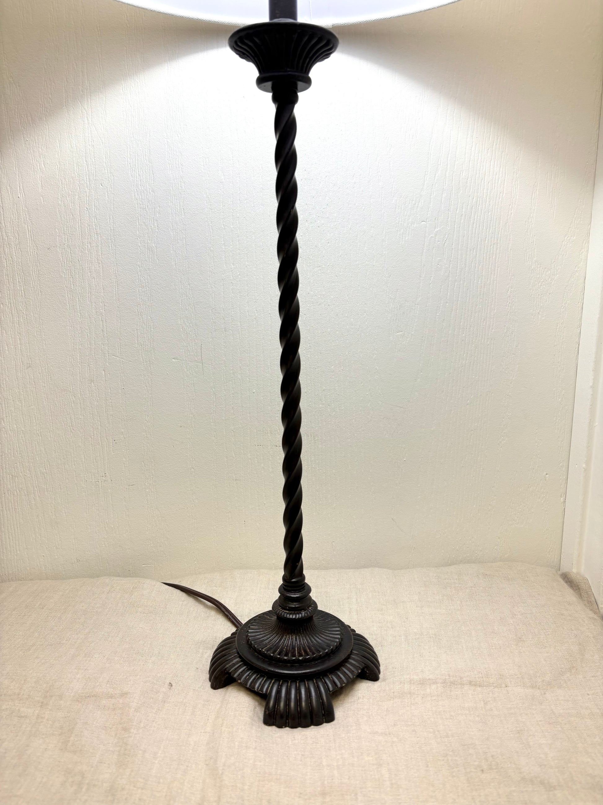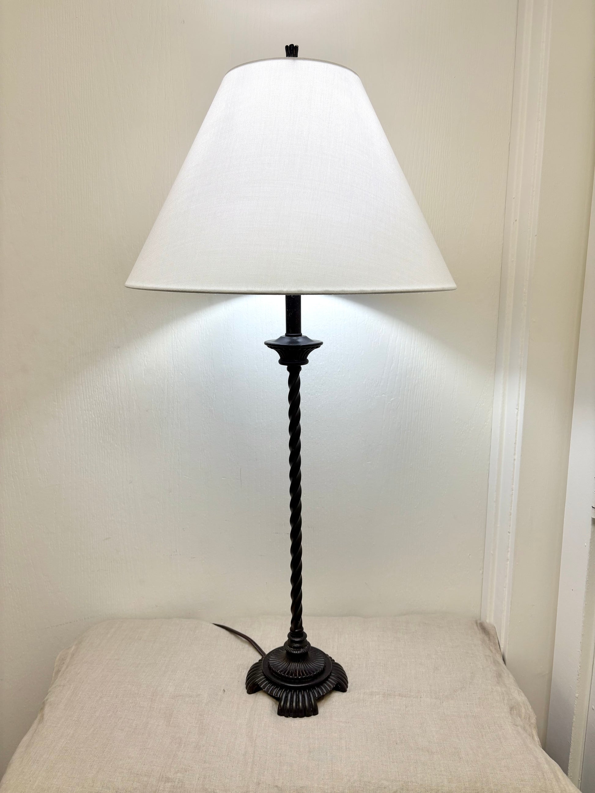 Timeless and Traditional Modern Vintage Twist Iron Base Table Lamp with New Linen White Shade