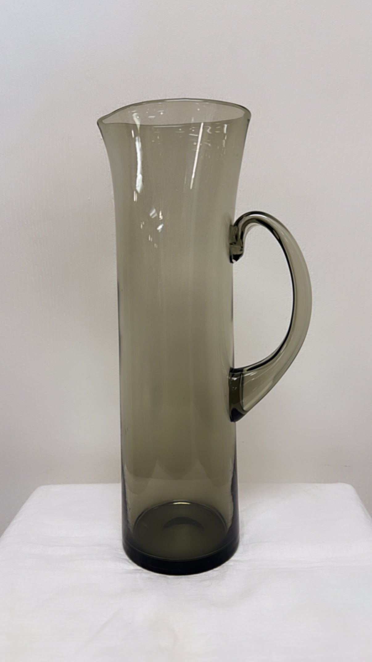 CLASSY AND MINIMAL MCM CIRCA 50s-70s BLOWN GLASS SLIM Mid-Century Smoke Grey Glass Cocktail Pitcher. In excellent vintage condition. Does not have glass stir stick.
