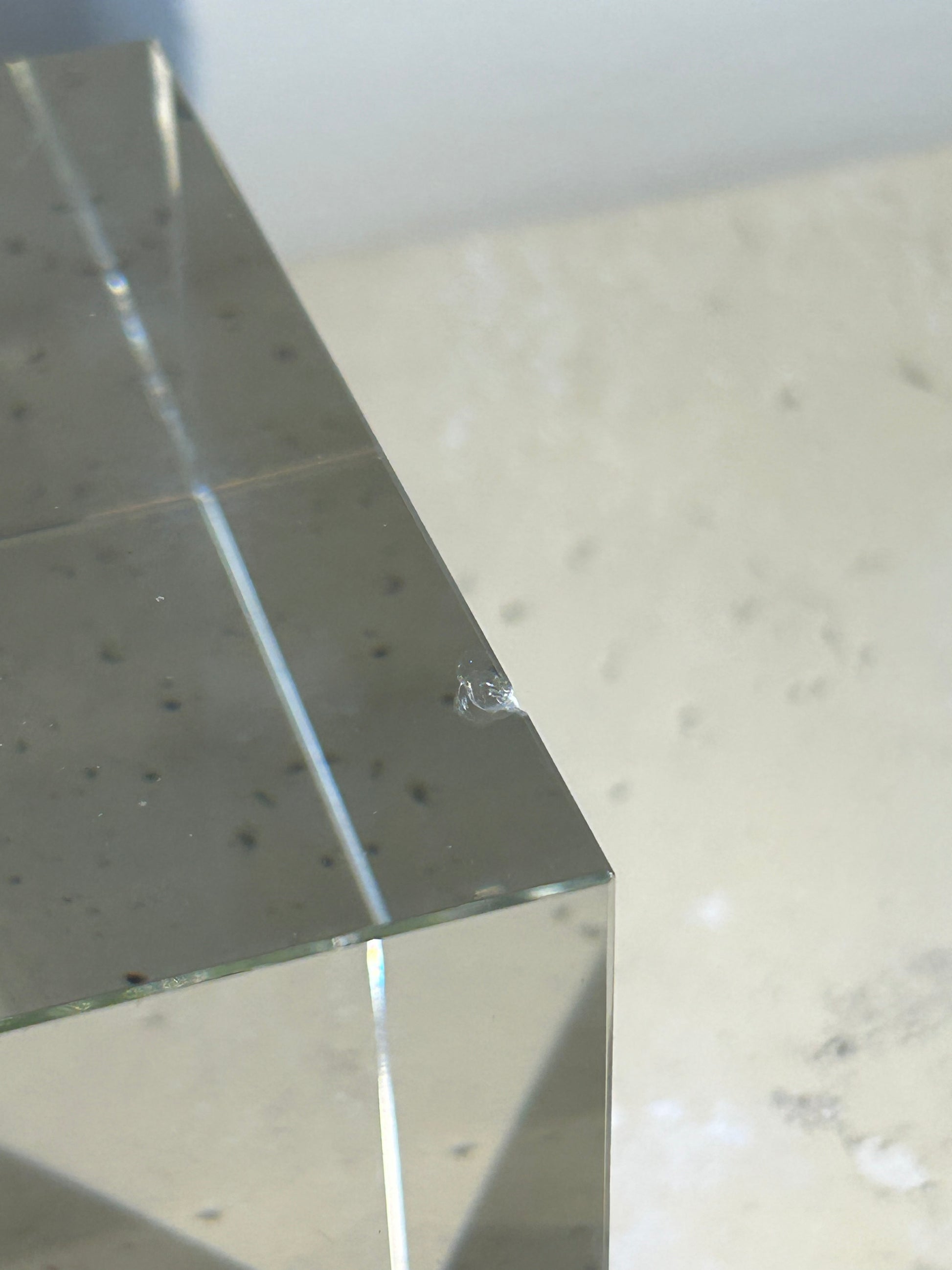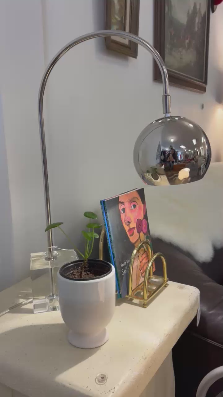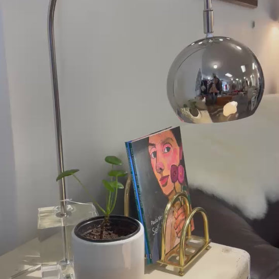 Beautiful Sleek Mid 2nd century Achille Castiglioni influence lamps. One lamp has a small chip on the glass base (please refer to last photo) and sold as is!