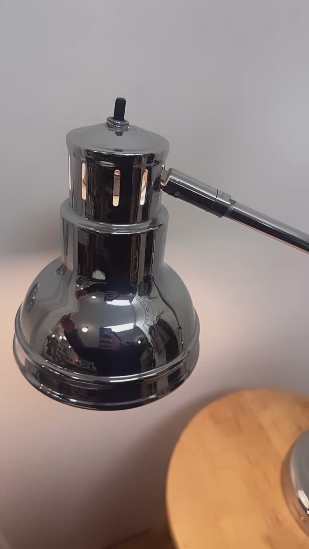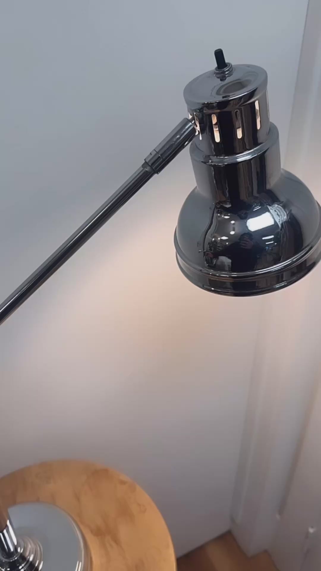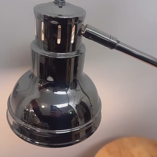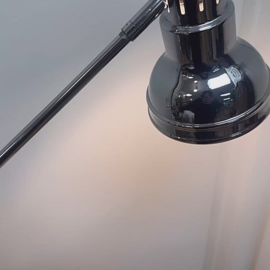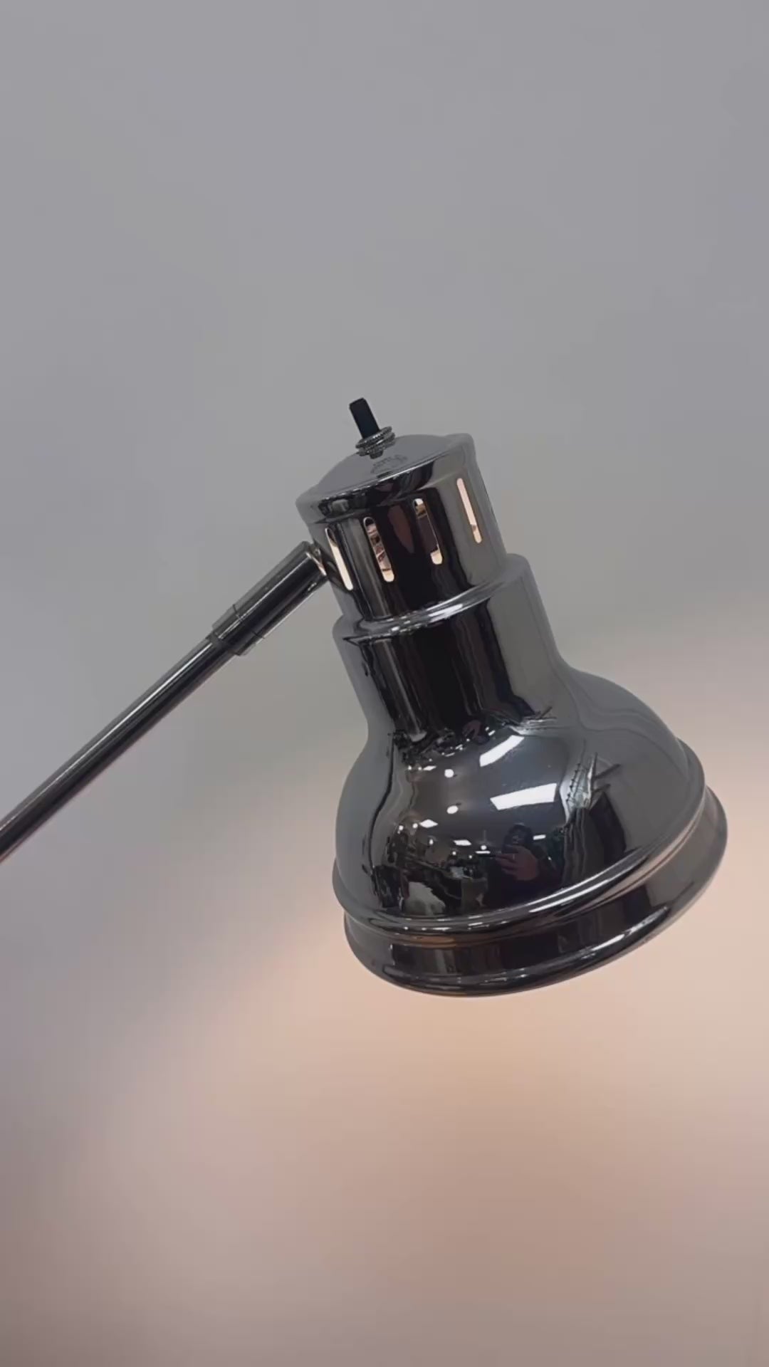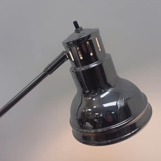 Industrial adjustable silver lamp. Modern style with leaver to tighten and loosen the hight of the lamp as well as a swivel feature on the head of the lamp with top twist switch. Two available, price is for each lamp.