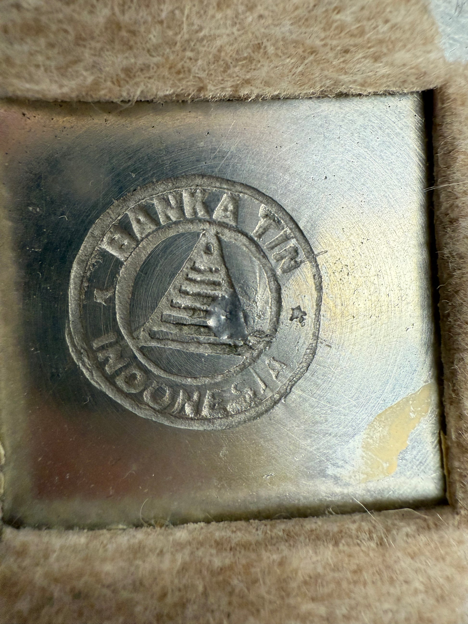 A cool statement kitchen piece! Silver vintage Banka Tin Indonesian large heavy jug/pitcher. This beauty has been loved with slight patina on its silver exterior and interior. Holds liquids or flowers