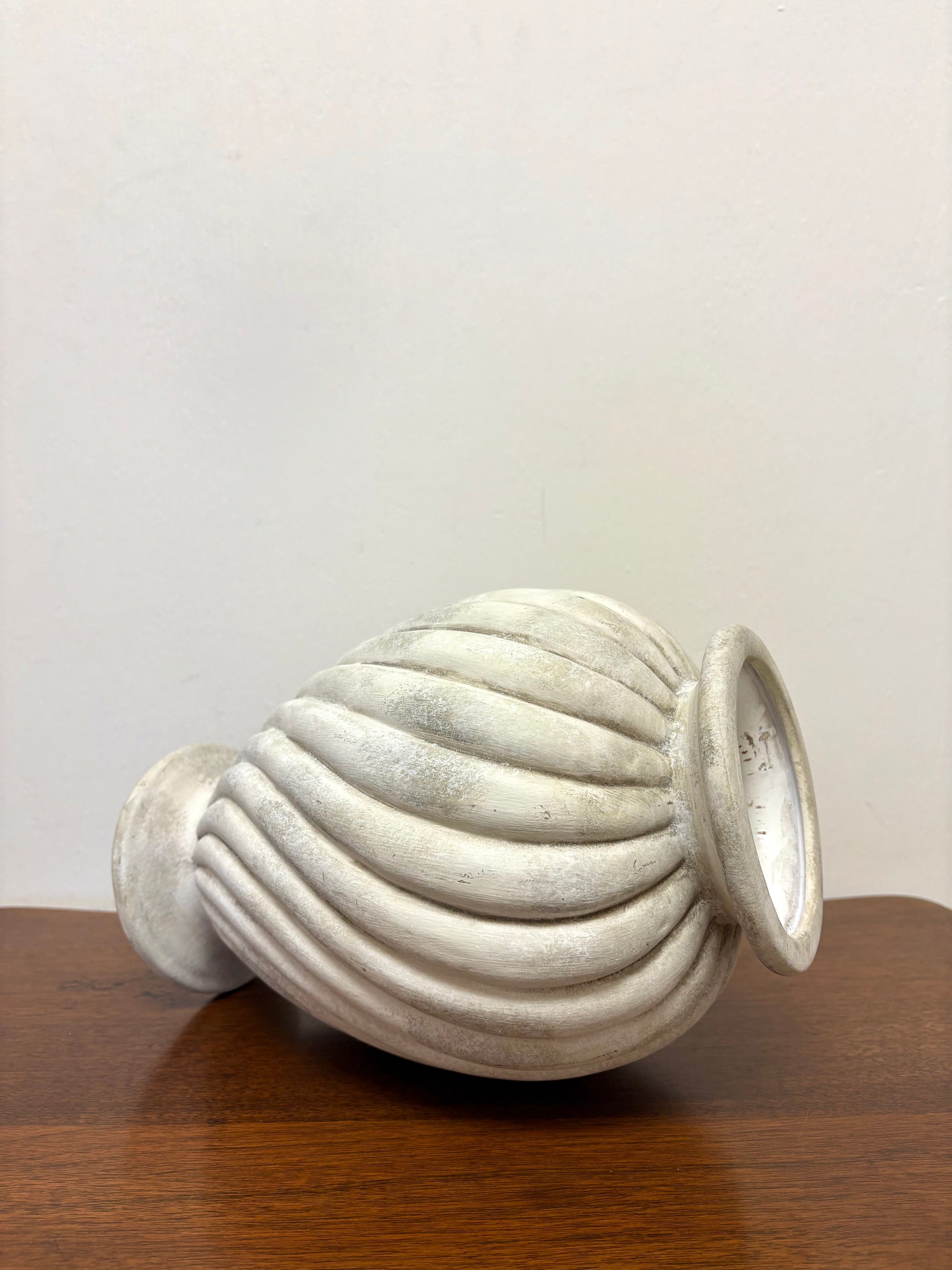 VINTAGE SWIRL FLOWER POT/VASE RUSTIC WHITE