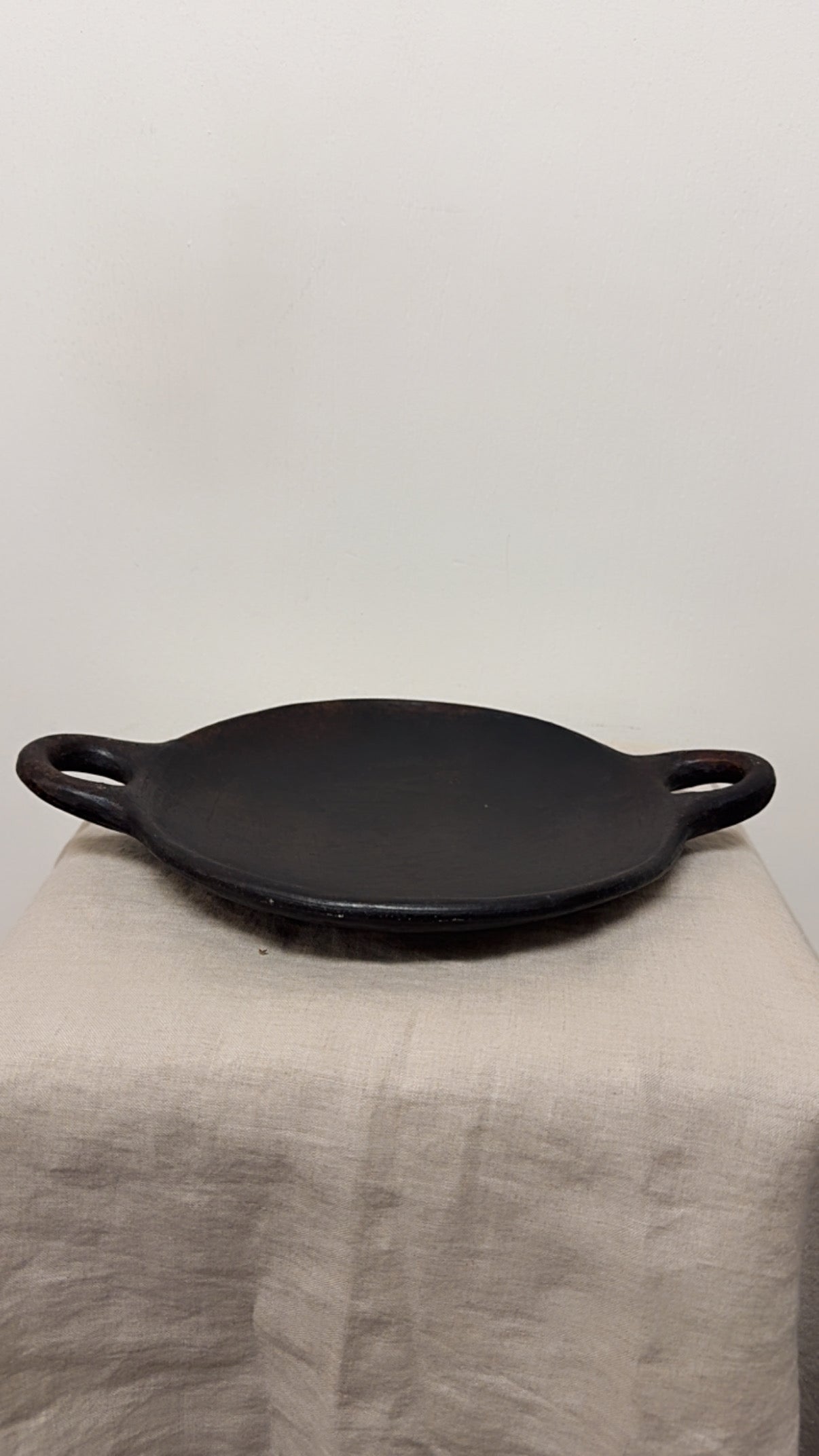 Traditional round terracotta comal used to make or heat tortillas and other foods. Crafted in the same traditional manner as our olla pieces, this comal is heat resistant but requires curing before use. Handmade in El Salvador, it reflects time-honored techniques and everyday functionality rooted in culture.