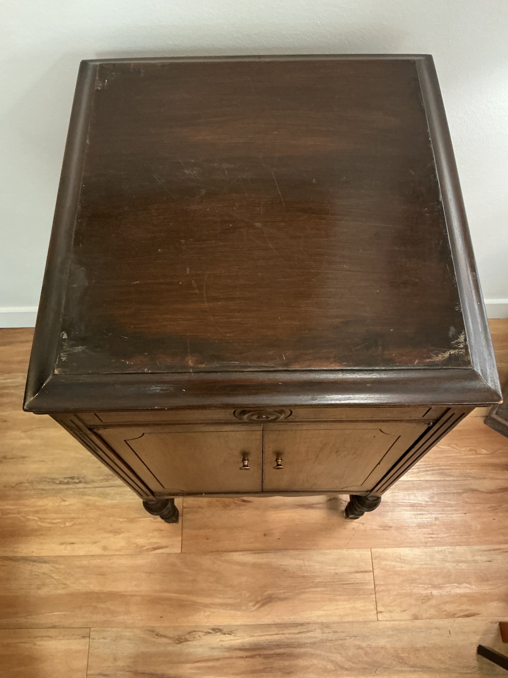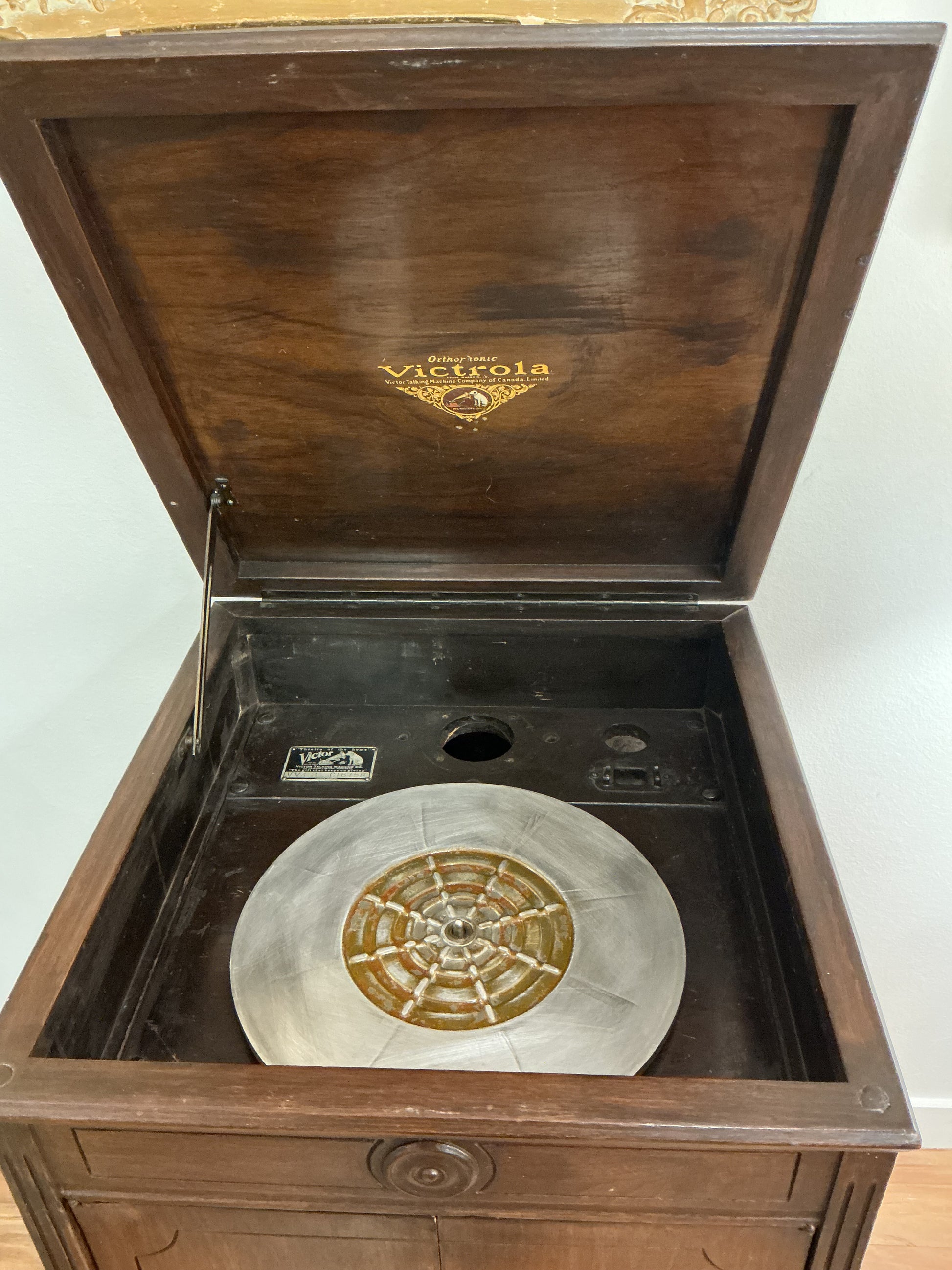 Antique mahogany VICTOROLA wind up acoustic phonograph/ gramophone “Consollette” cabinet. Production went from 1910-1925.