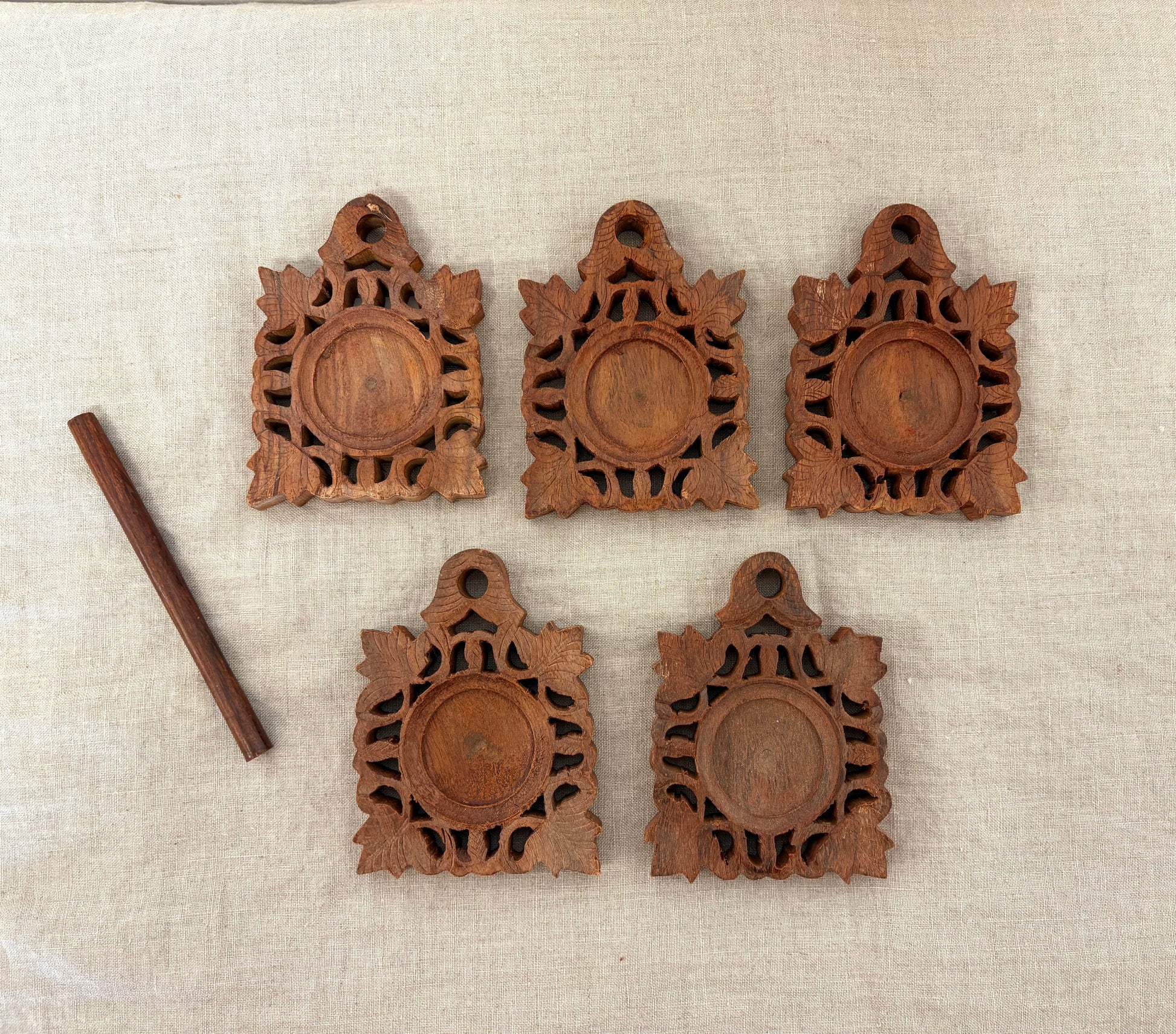 Vintage Hand Craved Wooden Coasters.